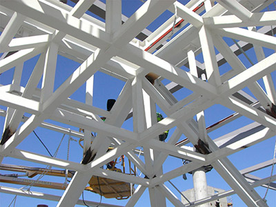 - Soldaduras realizadas íntegramente en taller. Las uniones en obra se limitan a tornillos de alta resistencia con tuerca doble arandela.